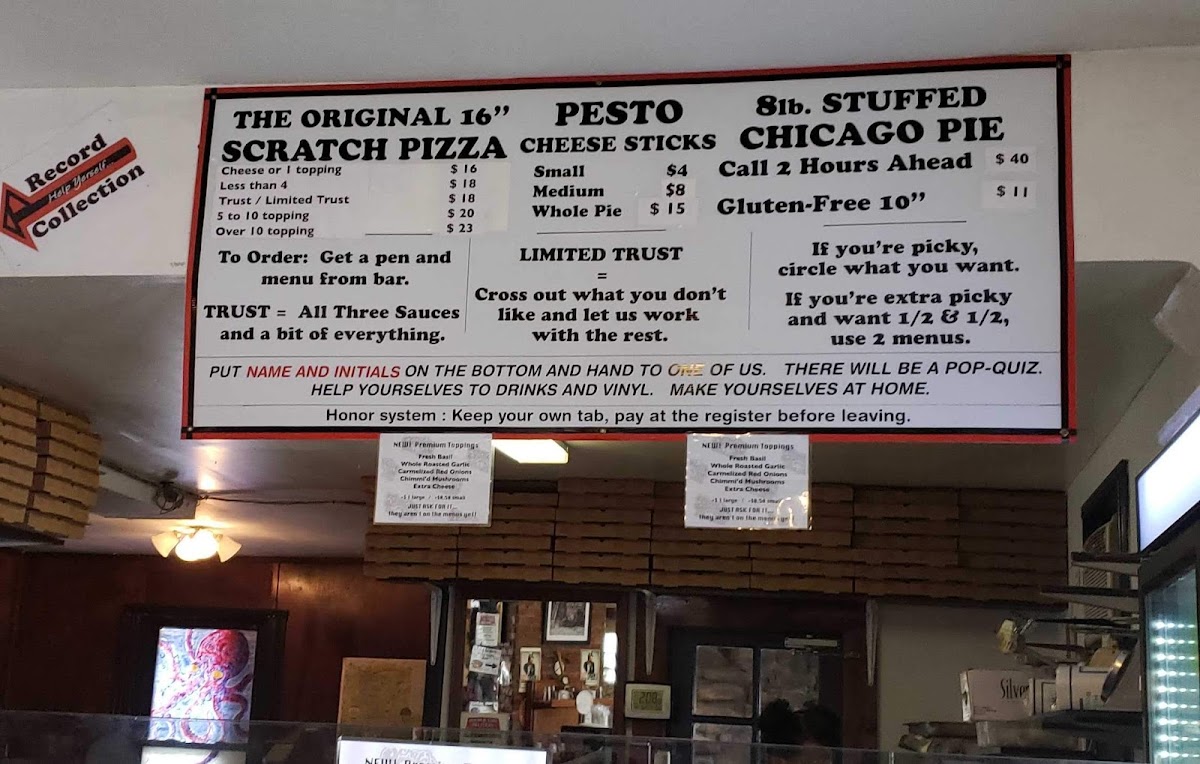 The atmosphere is undeniably inviting, with the unique touch of vinyl records for guests to enjoy while they dine. Many patrons have described the space as warm and welcoming—a perfect spot to relax with friends or family. The standout "Trust" pizza allows diners to take a leap of faith, making every visit an adventure in flavors.